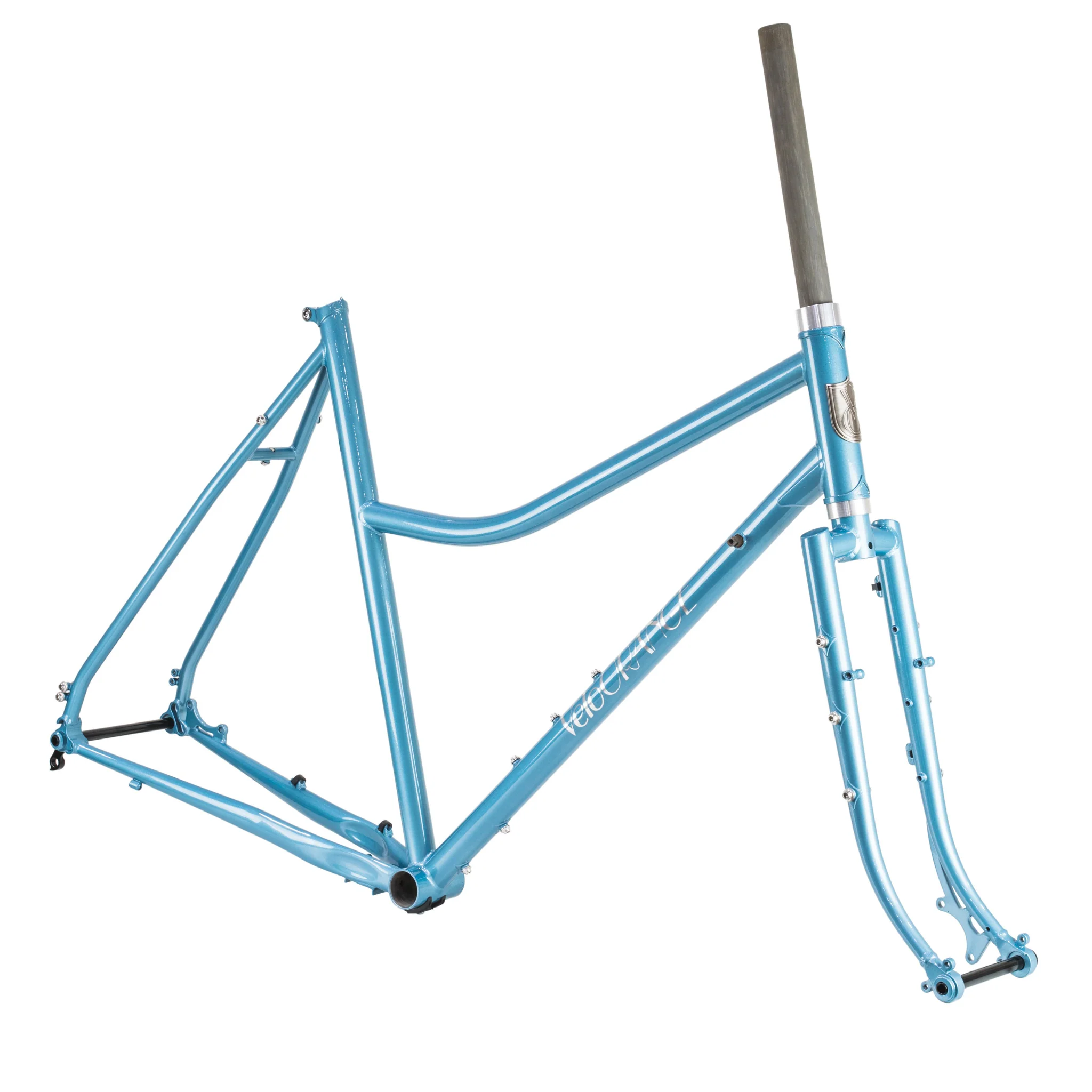 - Fork Eyelets: Double eyelets on fork dropouts for racks and fenders. Triple thru-bosses on the blades for lowrider racks for cargo cages. Hourglass braze-on for front racks like our Randonneur Front Rack.